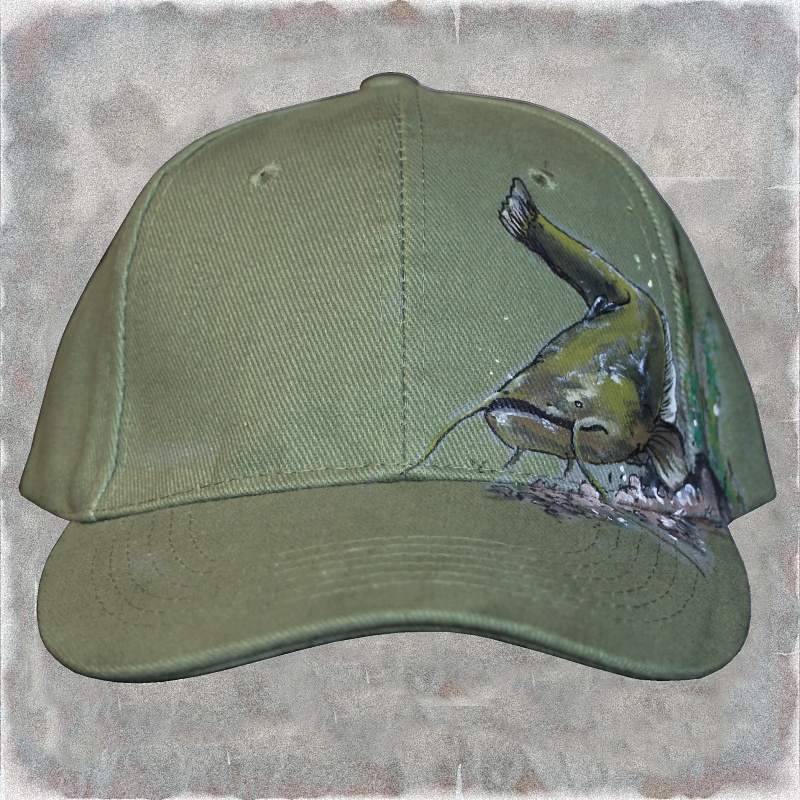 Ručně malovaná čepice s kšiltem rybářská, Sumec