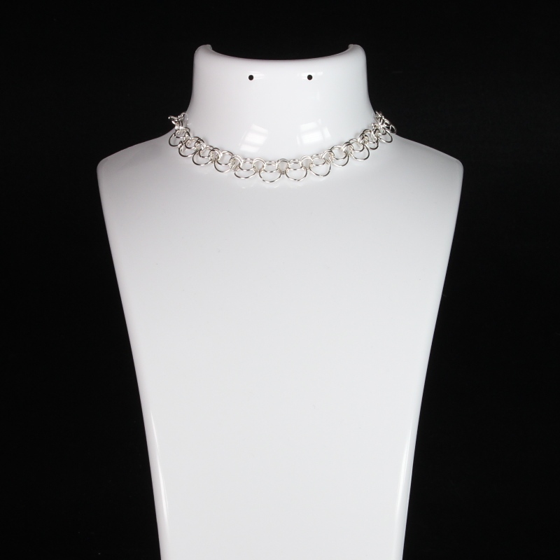 Náramek kombinuje větší a menší kroužek ve stejném poli, oba ve stříbrné barvě. Tu mají i kroužky spojovací a celý náramek tak vypadá velmi decentně a jemně.