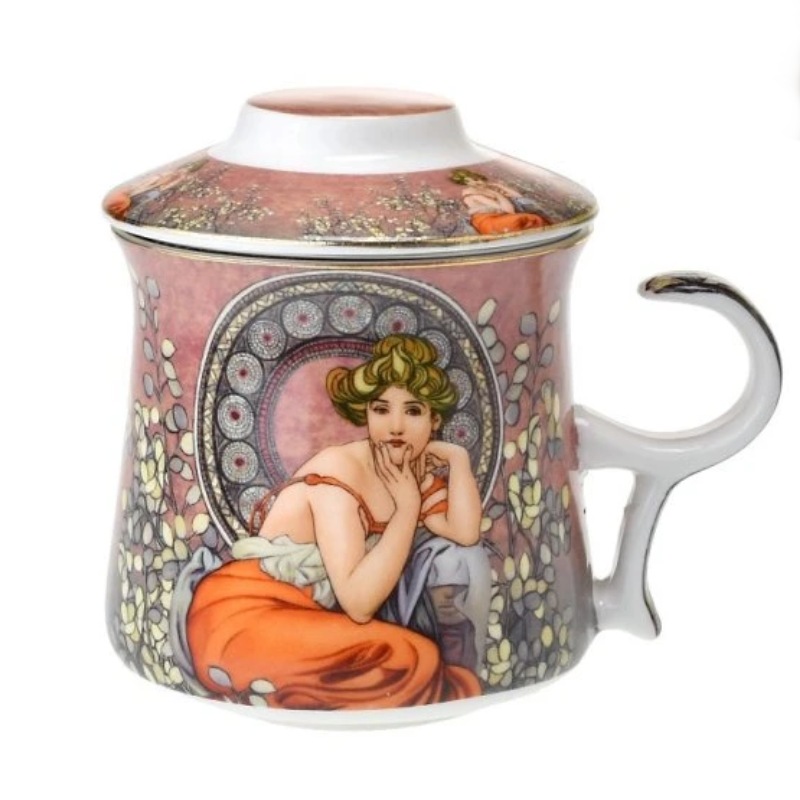 Spojení ryze praktického dárku se světem umění a fantazie, jak ho ve své tvorbě viděl mistr secese Alfons Mucha, vytváří působivý výsledek. Design hrnku skvěle zapadne do jakékoli domnácnosti a pomůže vytvořit příjemnou domácí atmosféru. Vybavený je nerezovým sítkem a porcelánovým víčkem.