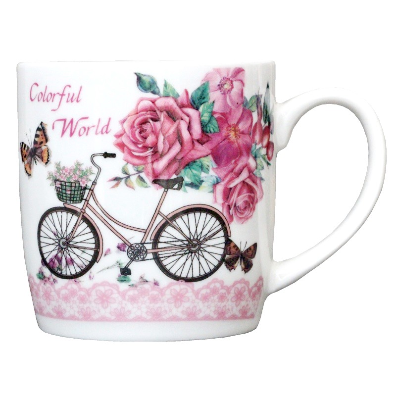 Hrnek 2x 300ml, podšálek, Bicykl s růží, kufřík
