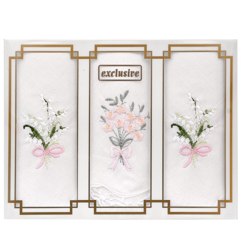 Dámské vyšívané kapesníky 3ks, dárkové balení, LA25
