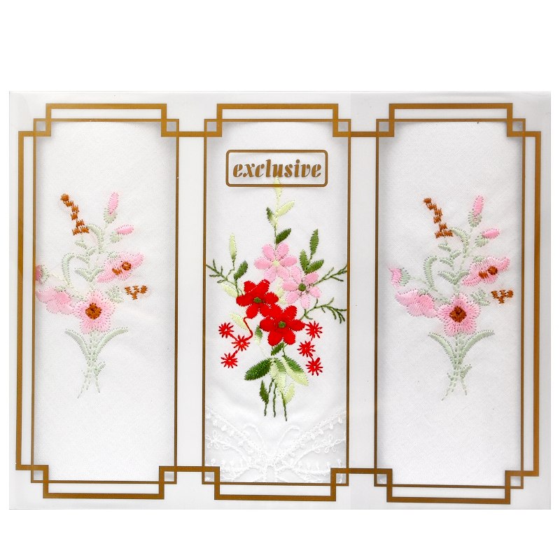 Dámské vyšívané kapesníky 3ks, dárkové balení, LA25