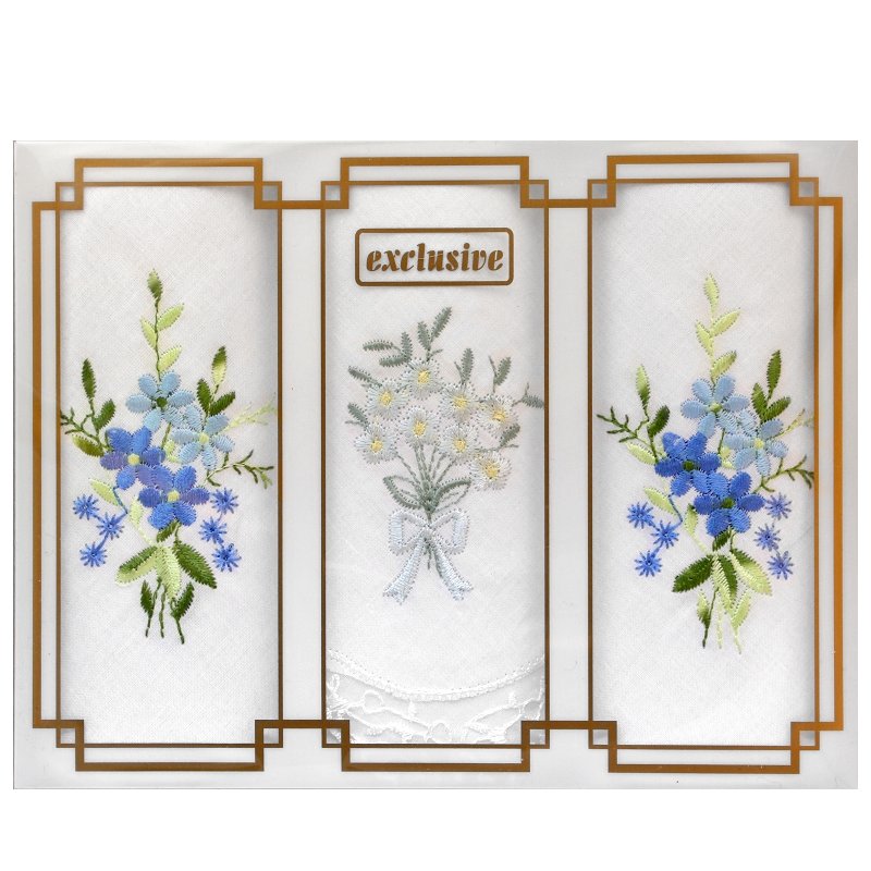Dámské vyšívané kapesníky 3ks, dárkové balení, LB25
