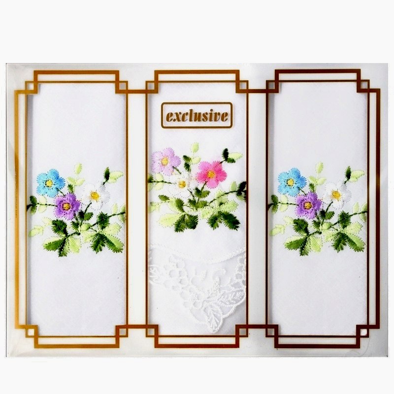 Dámské vyšívané kapesníky 3ks, dárkové balení, LC25