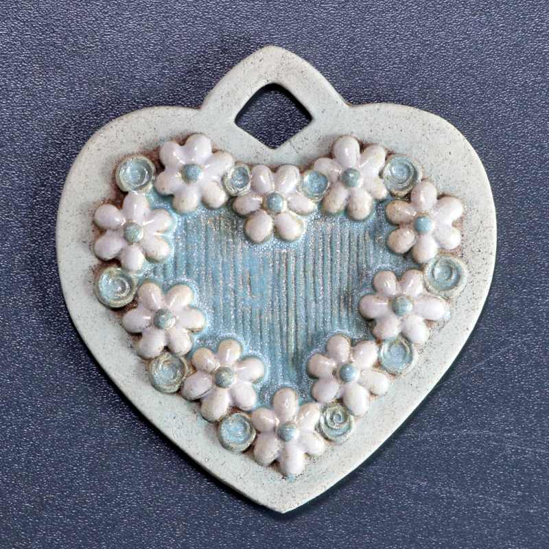 Kouzelné keramické srdíčko lemované kvítky.