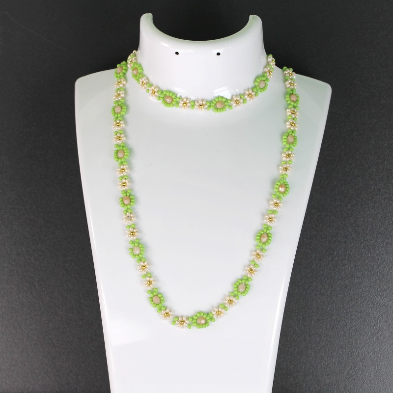 České skleněné perličky laděné v zelenobílé kombinaci v úchvatné sadě náramku s náhrdelníkem.