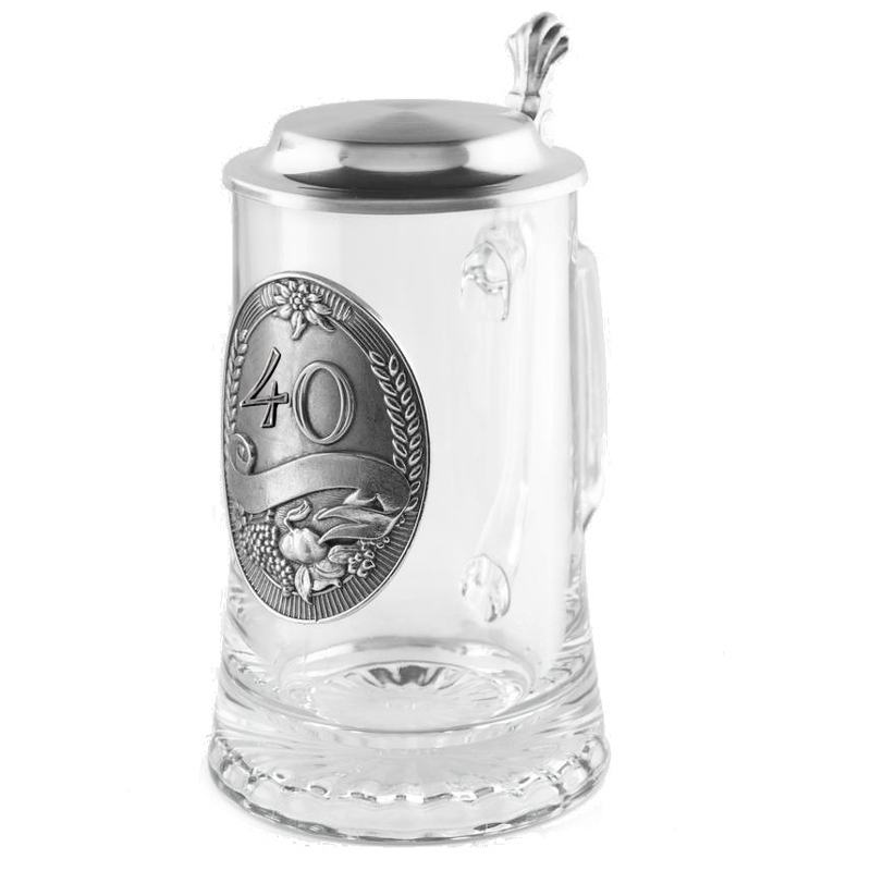 Vysoce kvalitní originální výrobek firmy ARTINA, skleněný půllitr doplněný cínovým víčkem a dominantní vinětou s motivem 40.