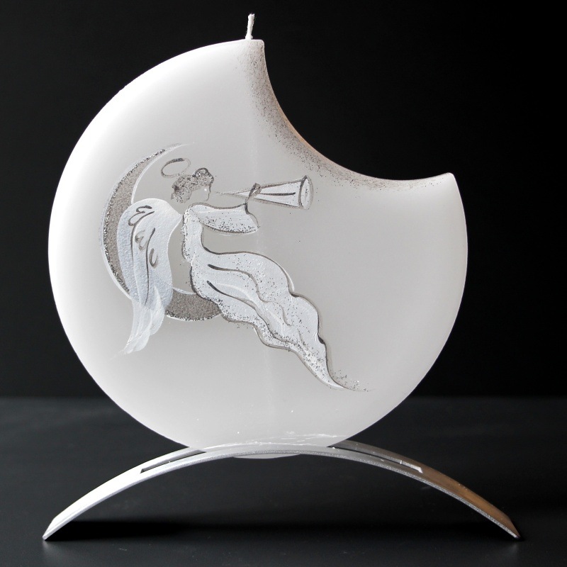 Svíčka, ručně malovaná, plochá, Anděl na měsíci 145