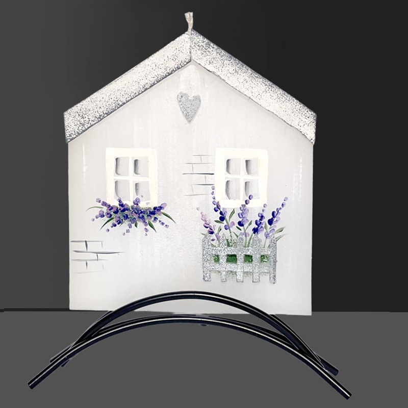 Svíčka, ručně malovaná 3D, plochá, Domeček s levandulíPŘIPRAVENO K ODESLÁNÍ309 Kč/ ks