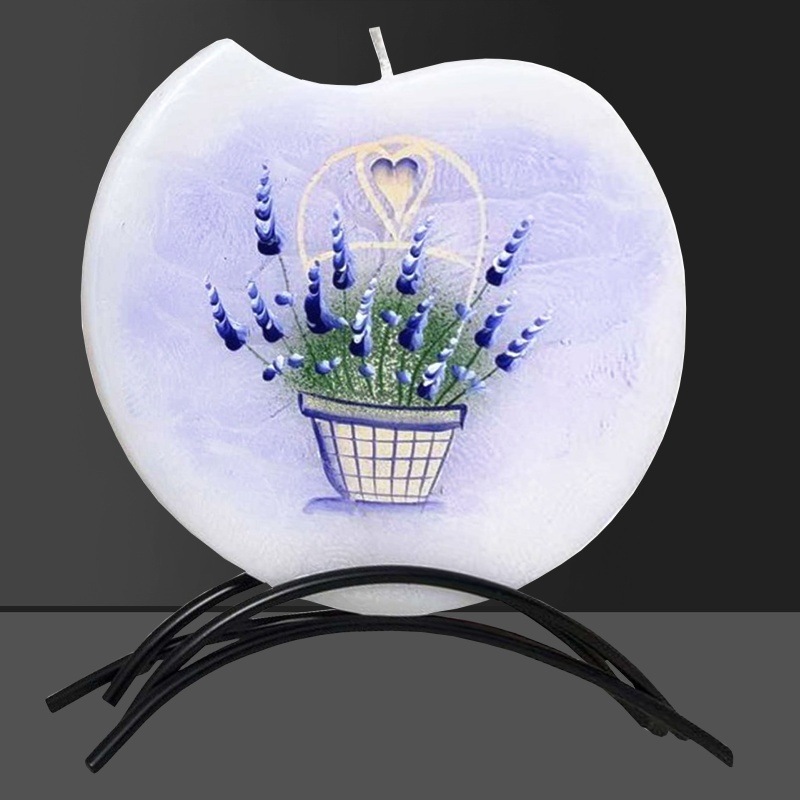 Svíčka, ručně malovaná, plochá, Levandule košík 145