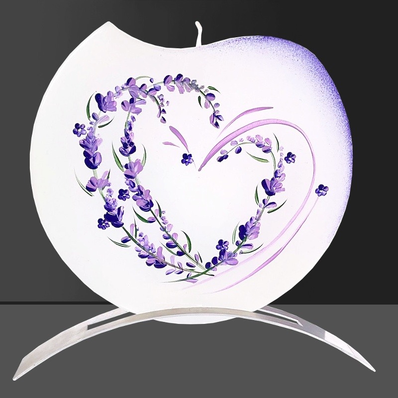 Svíčka, ručně malovaná, plochá, Levandule srdíčko 145PŘIPRAVENO K ODESLÁNÍ298 Kč/ ks