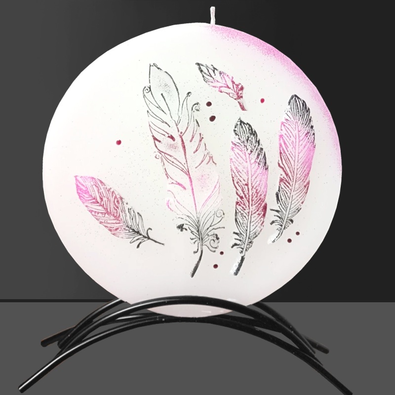 Svíčka, ručně malovaná, plochá 3D, Pírka 145PŘIPRAVENO K ODESLÁNÍ298 Kč/ ks