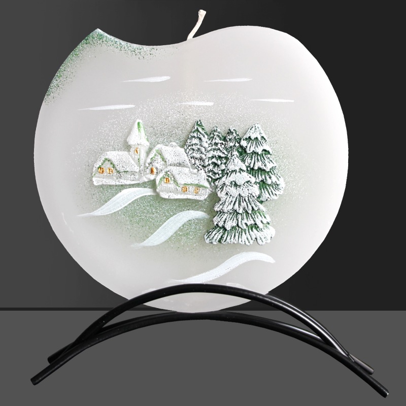 Svíčka, ručně malovaná, plochá 3D, Zimní chaloupka 145