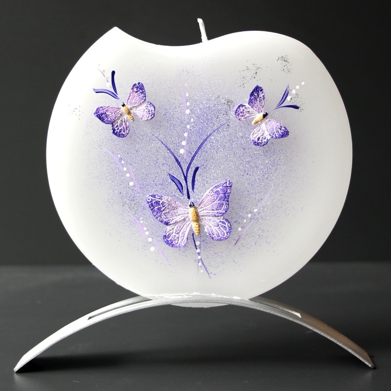 Svíčka, ručně malovaná, plochá 3D, Motýli 145