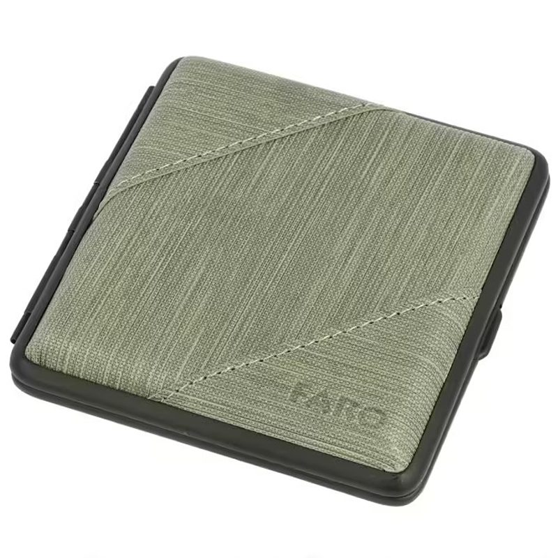 Kovová, vkusně zdobená koženkou, uchycení cigaret pomocí gumiček.