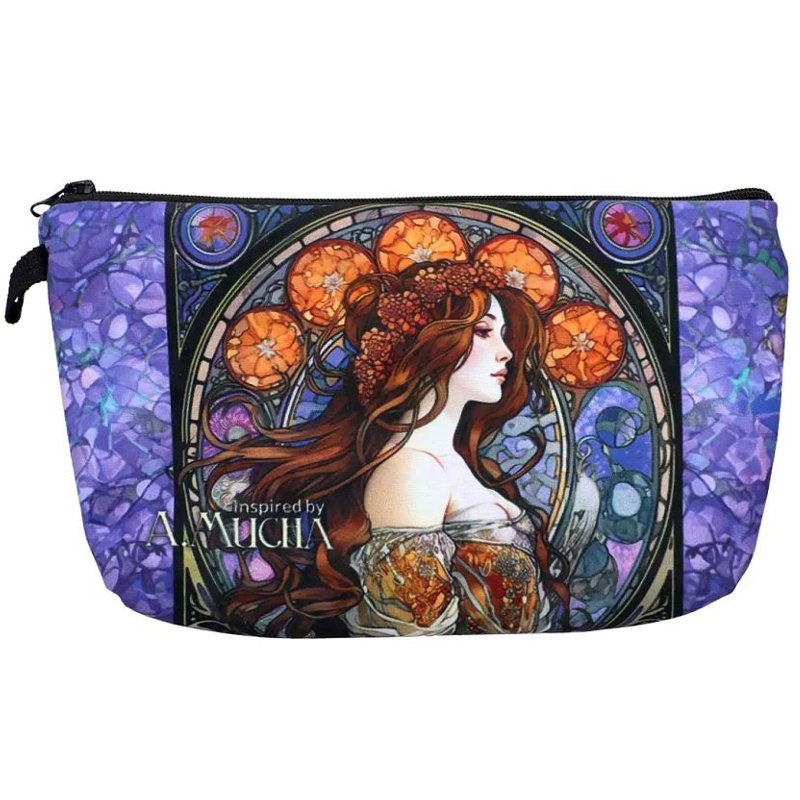 Cestovní kosmetická taška s dekorem Alfonse Muchy – designový kousek pro každodenní použití, který nelze přehlédnout. Jeho díla oslavují ženskou křehkost, krásu a jemnost.