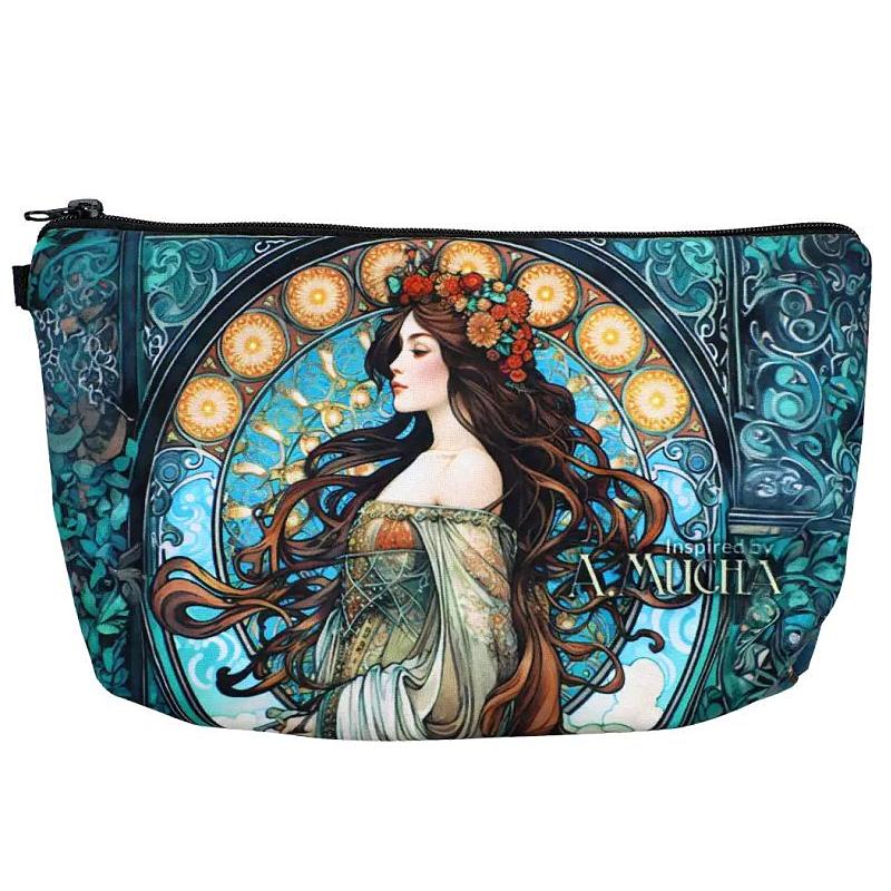 Toaletní taška s dekorem inspirovaným tvorbou Alfonse Muchy - když praktičnost potká krásu