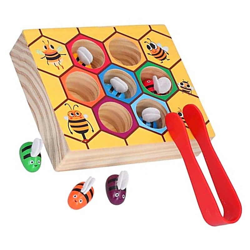 Každá včelka je jinak barevná a je te třeba ji umístit do správného obydlí. k tomu slouží plastová pinzeta, kterou lze včelku uchopit za křídla a přemístit.